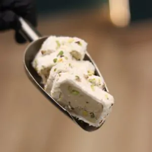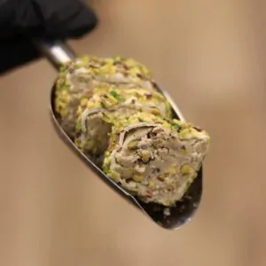 Una combinación única y sofisticada que une el sabor ácido del zereshk (agracejo) con la cremosidad del pistacho , creando un equilibrio perfecto entre lo agrio y lo dulce.